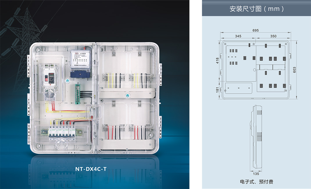 ,采用進口聚碳酸酯(PC)和阻燃ABS工程塑料制成。具有抗沖擊、抗老化、耐腐蝕、透明度高、抗紫外線、安裝方便等優點,并且具有用電安全保護,用戶分離控制,數據采集, 防盜電等功能。產品適合安裝電子式、機械式、智能IC卡預付式、智能多費率式電表。南騰NT系列透明