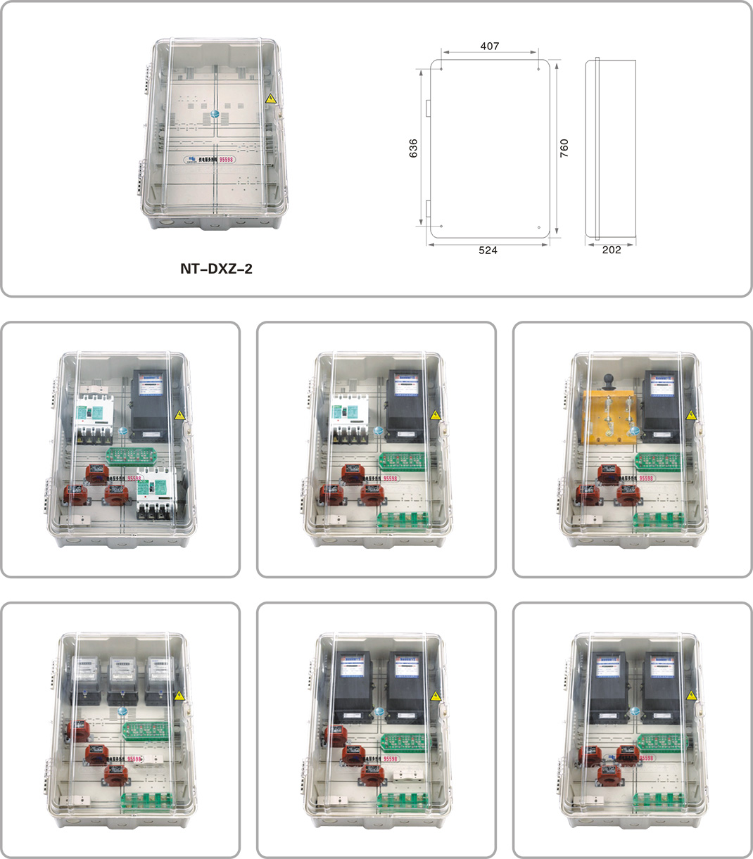 NT-DXZ系列三相多功能動(dòng)力計(jì)量箱是一種功能多樣化、防竊電透明化的新一代計(jì)量配電箱,可滿(mǎn)足不同用戶(hù)的多種需求。具有體積小、功能多變、組合方便等特點(diǎn),箱內(nèi)空間可依據(jù)客戶(hù)需求設(shè)置各類(lèi)電表、電流互感器、低壓熔斷器、低壓斷路器、進(jìn)出線端子、聯(lián)合接線盒的安裝位。底座上設(shè)有各類(lèi)安裝槽,方便安裝各類(lèi)原件,并可以在預(yù)付費(fèi)電表、開(kāi)關(guān)相應(yīng)的位置設(shè)置IC卡窗口和開(kāi)關(guān)窗口。