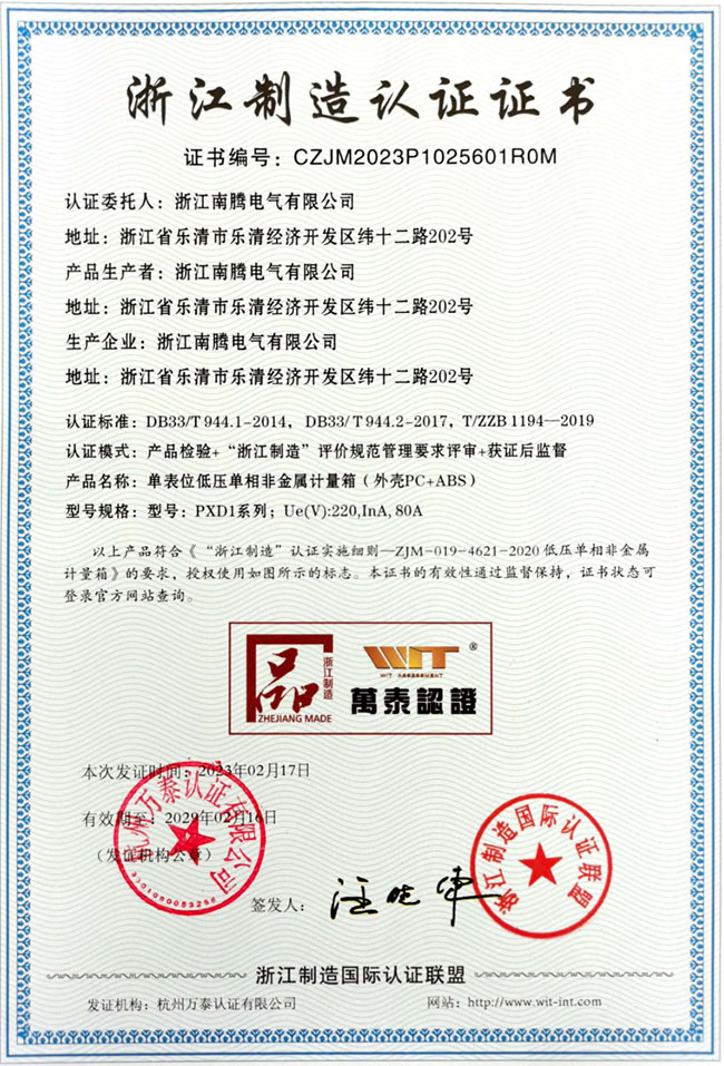 浙江制造認證證書